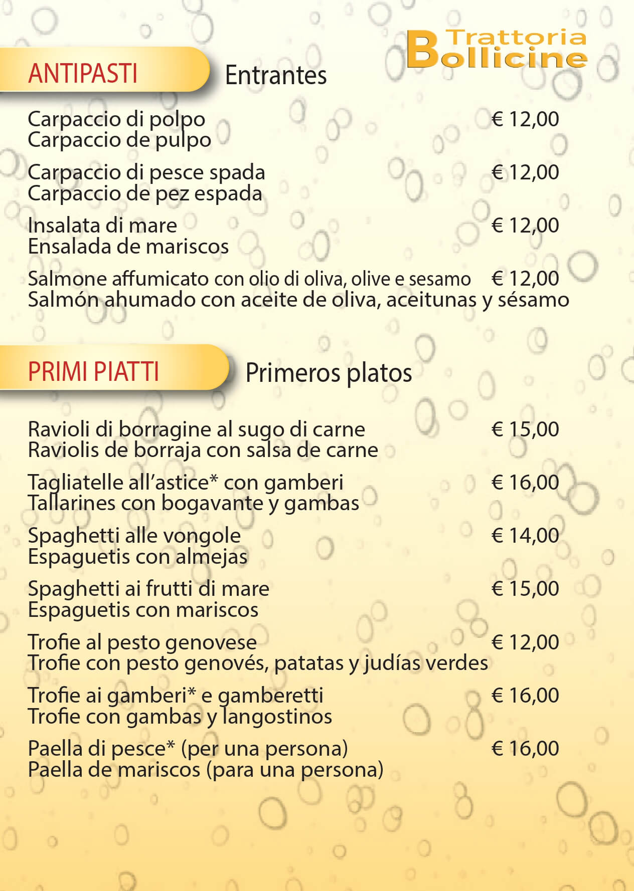 "¡Bienvenidos a la Trattoria Bollicine! Les deseamos buen provecho y que pasen un momento maravilloso en nuestro restaurante."